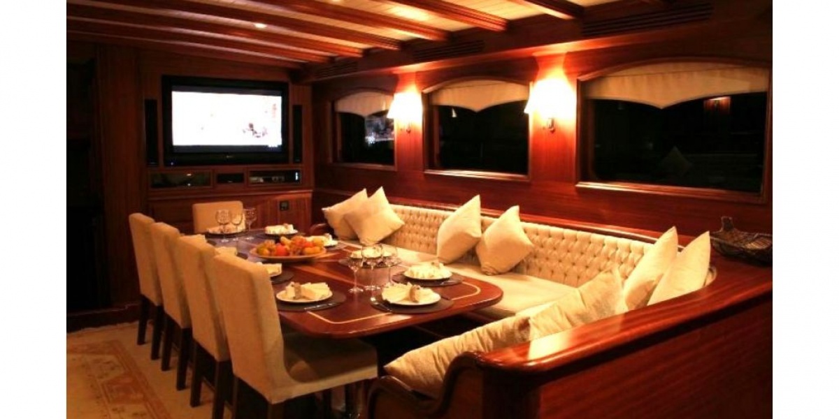 Furling Mainsail, Events and Meetings, Internet, Satellite Phone, Classic Yacht, GPS, Entertainment System, Autopilot, SSB. VHF, Jetski, BBQ, Jacuzzi, Snorkelling Gear, Air Con, Sport Fishing Available in Bodrum